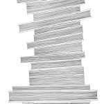 Lire, comme dire ou écrire, est une action linéaire. Que ce soit dans le désordre ou dans un ordre qui fait sens, chaque mot vient après un autre, dans une succession inéluctable qui fait flux. Chaque mot est une durée, la lecture est affaire de temps qui s’écoule. Dans ce dessin, une ligne continue représente le fil des durées de lecture mises bout à bout, dans une vie par exemple – ou dans une bibliothèque.